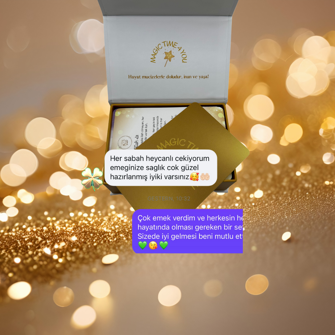 Karttaki birkaç kelimeyi kalbinden oku, derin bir nefesle niyet et ve günündeki görevi uygula. - ✅ Kimler için: Dileklerinin gerçekleşmesini, iç huzuru ve dualarında güçlenmeyi isteyen herkes için.